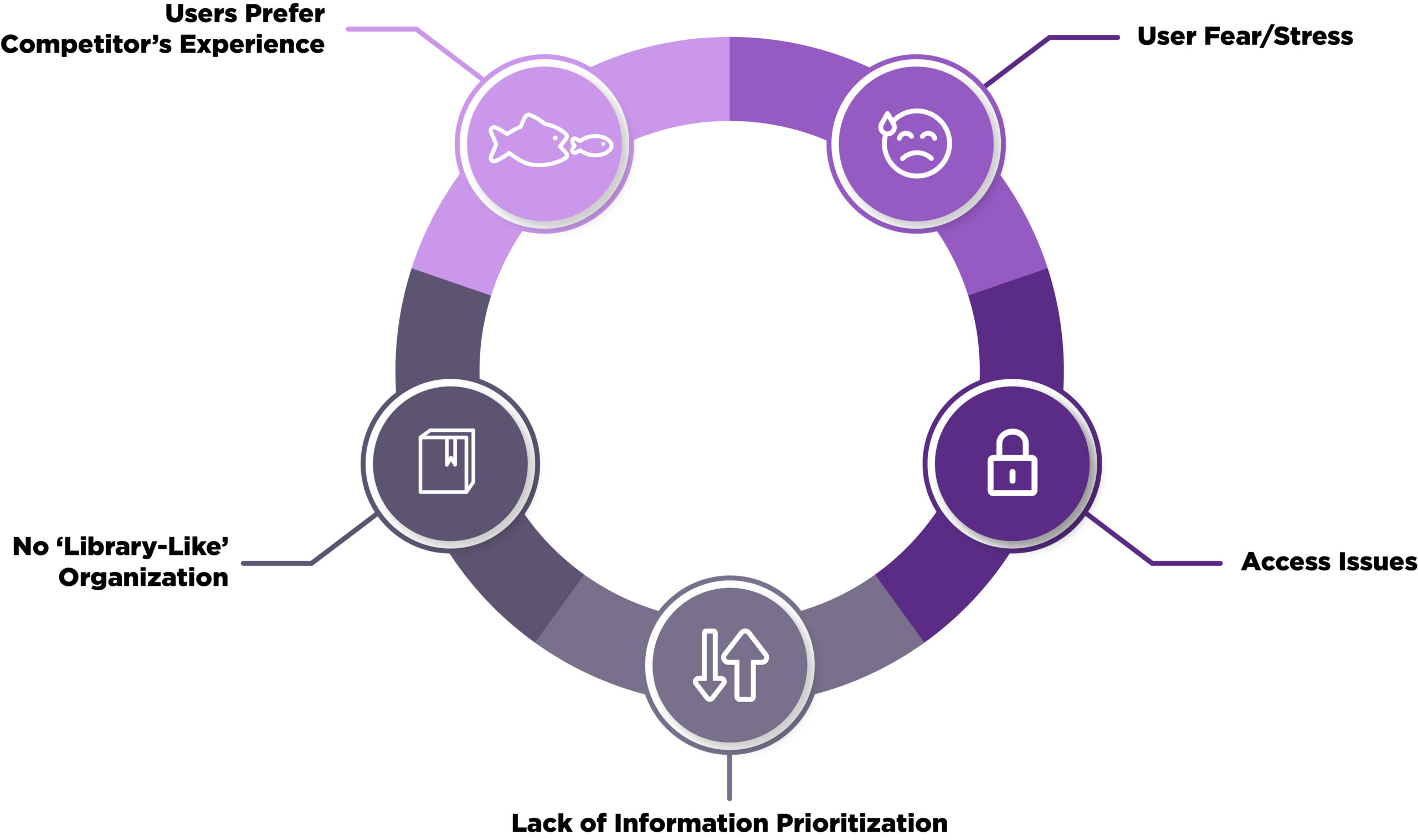 EK’s user and system research found a cycle of challenges that reduced user confidence in the client’s documentation hub.